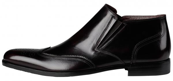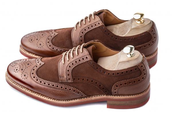 Wingtips have a brogued cap, which comes to a point at the centre of the top and curves back and down along the sides.