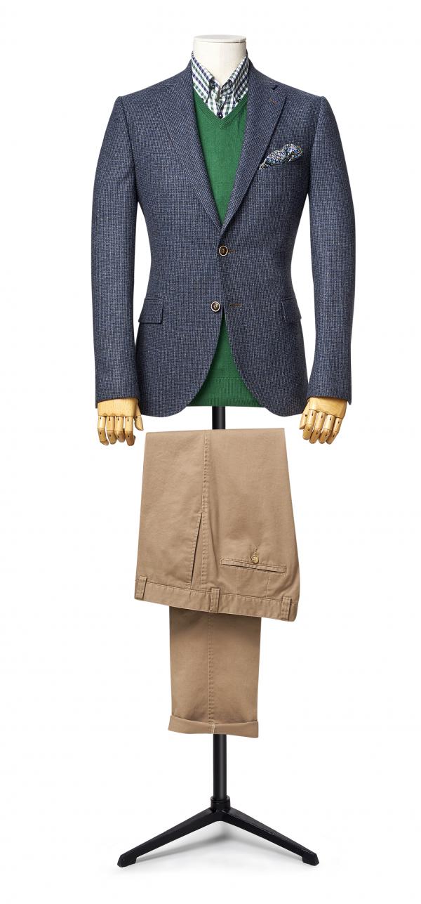 We recommend you balance the functional part of your wardrobe with a minimum of two pairs of dark wool trousers and three or more pairs of chinos.