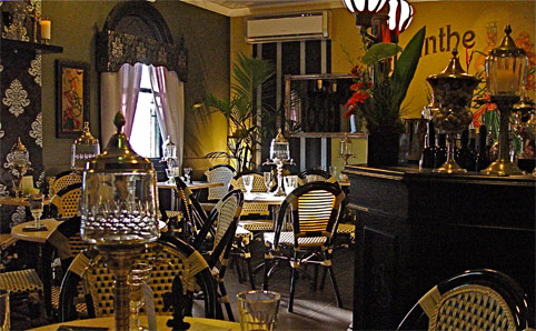 Gargoyle on the bar, cream and black wicker chairs, and Marilyn Manson posters. Yep, this place is what you might call eclectic, and that’s just the décor. Your hostess will even walk you through the intricacies of imbibing the infamous drink in just the right way. There’s no need to count your drinks in this bar as the owner’s common sense prevails with a three drink maximum for each patron.